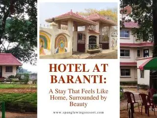 Reconnect with nature at Spangle Wings Resort, a leading hotel at Baranti offering comfort and tranquility. Surrounded by rolling hills and lush landscapes, the resort provides spacious rooms with modern amenities for a relaxing stay. Guests can explore nearby attractions, enjoy peaceful walks, or unwind amidst serene surroundings. The on-site restaurant serves a variety of local and international dishes to enhance the stay experience. Perfect for families, couples, and solo travelers, Spangle Wings Resort combines natural beauty with warm hospitality. Visitors can enjoy scenic views, quiet moments, and a memorable escape from city life. With clean accommodations, friendly staff, and well-organized facilities, the resort ensures a comfortable and enjoyable stay.