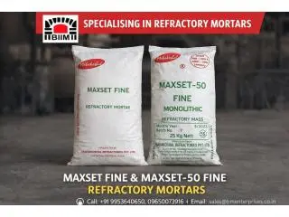 BM Enterprises offers Maxset Fine and Maxset 50 Fine, which are high-quality fine refractory mortars designed specifically for joints in fire bricks, laying insulation bricks, and repair work in heat-resistant applications. Maxset Fine is suitable for general-purpose furnace, boiler, kiln, and chimney lining operations, while Maxset 50 Fine is an advanced grade of refractory mortar, which has superior bonding strength, better heat shock resistance, and longer life in high-temperature zones. Maxset Fine has high adhesion, crack resistance, and can withstand temperatures of up to 1600°C, while Maxset 50 Fine has all these qualities, in addition to the high alumina content, which provides superior bonding strength, heat shock resistance, and longer life in high-temperature zones.