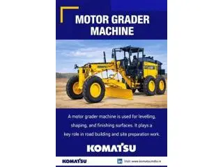 A motor grader machine is used for levelling, shaping, and finishing surfaces. It plays a key role in road building and site preparation work. Precise blade control helps achieve smooth and even surfaces. This reduces extra material use and rework. The machine also supports proper drainage through accurate slope control. Reliable performance helps improve road quality and safety. Komatsu India offers motor grader machine options built for accuracy and long service life. Speak with experts today to select the right grader for your project.
